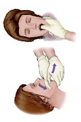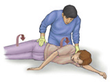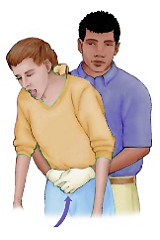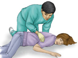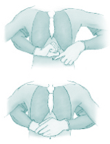 ※이 방법은 의료인만 실시하며, 환자가 임신 말기이거나 비만일 경우 심폐소생술 하듯이 가슴압박을 실시한다.